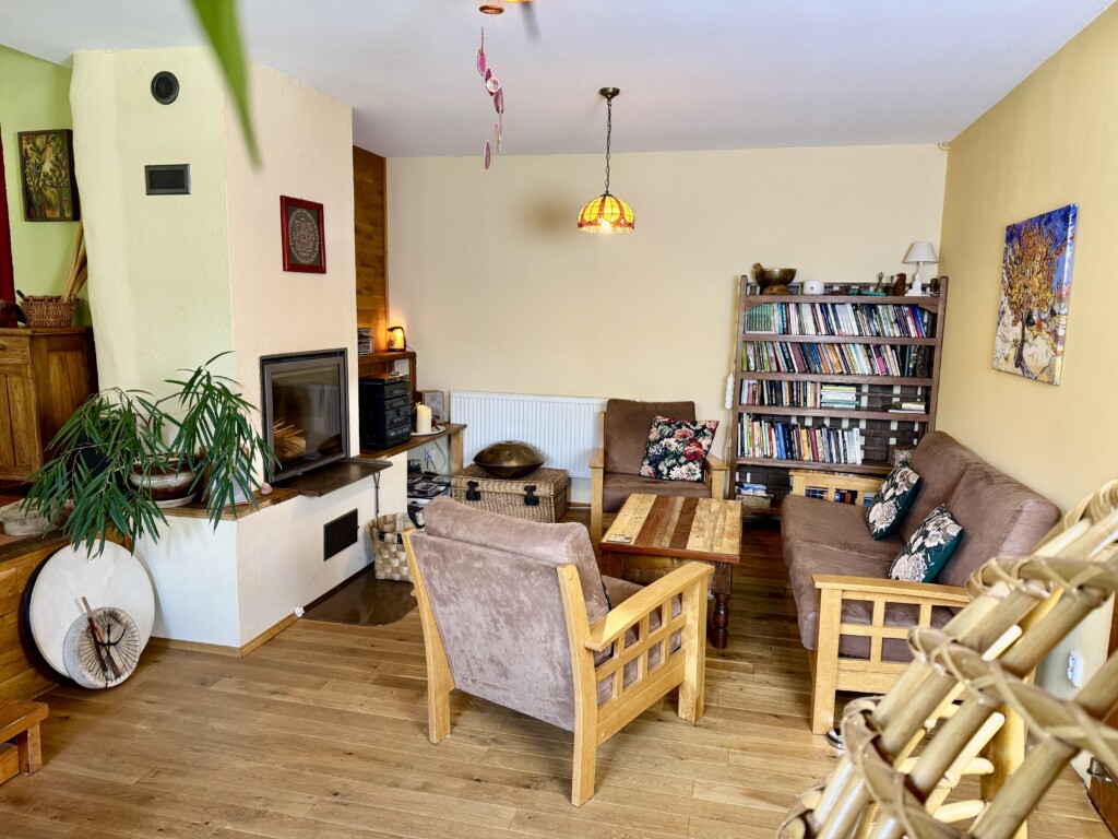Dům je vytápěn plynovým kondenzačním kotlem s možností vytápění krbem s