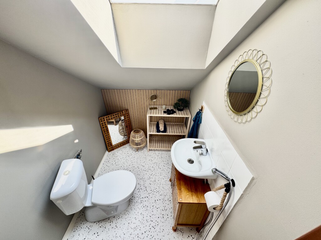 vstupem do koupelny s wc a pracovny (či pokoje pro hosty). Z pokoje pro hosty je