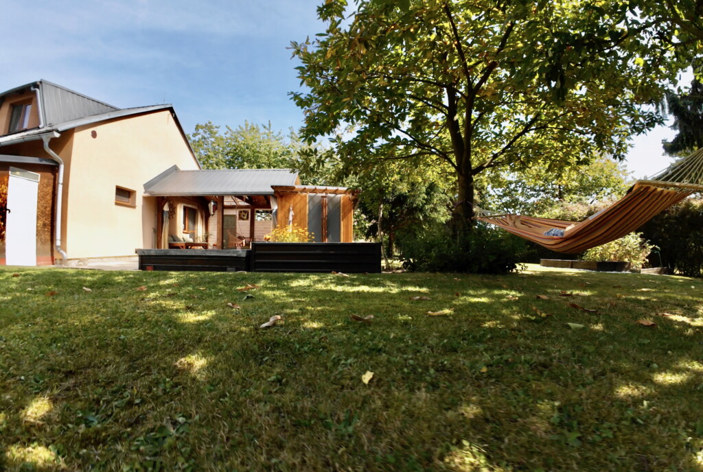 klid. Na zahradě můžete chodit jak vás pánbůh stvořil:-). Vzrostlé stromy skýtají